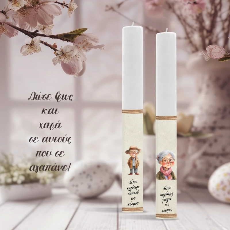 ✔ 2 λαμπάδες υψηλής ποιότητας (παππούς & γιαγιά)